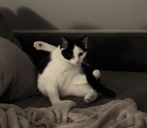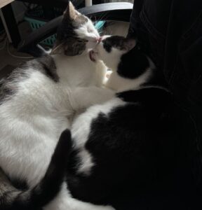 Beide haben sich bei uns sehr gut eingelebt und fühlen sich inzwischen richtig zuhause. Sie sind deutlich zutraulicher geworden, kommen von sich aus auf uns zu und lassen sich inzwischen auch gerne kraulen. Es ist schön zu sehen, wie viel Vertrauen sie gefasst haben und wie entspannt sie geworden sind. Sie jagen sich auch liebend gern durch die gesamte Wohnung.