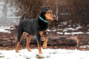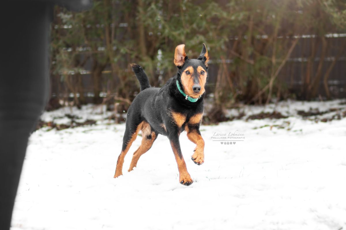 Unser Heide-Terrier-Mix Rudi ist ca. 2019 geboren und ein kastrierter Rüde. Er kam am 20.02.2023 zu uns, weil sein Herrchen erkrankte. Rudi ist ein aufgeschlossener aktiver Hund, der für sportliche Menschen gut geeignet ist. Lange Wanderungen, Inliner fahren und joggen bereiten ihm viel Freude und unterstützen seine Auslastung. So gern er sportliche Aktivitäten mag … so kann er Fahrräder und Fahrradfahrer so gar nicht leiden. Dies ist auch der Grund, weshalb er als gefährlich eingestuft ist und draußen mit Maulkorb und Leine geführt werden muss. Was damals genau vorgefallen ist, wissen wir allerdings nicht. Zurzeit wird dieses Thema mit ihm trainiert. Ebenfalls auf seiner No-go-Liste stehen Katzen und Kleintiere. Diese sollten sich im neuen Zuhause nicht befinden. Mit anderen Hunden ist er gut verträglich und als Zweithund gut geeignet sowie für Familien mit Kindern, da er für sein Leben gern kuschelt. Ein eingezäuntes Grundstück wäre perfekt für ihn. Denkbar wäre auch eine Außenhaltung mit einem beheizbaren Rückzugsort.
