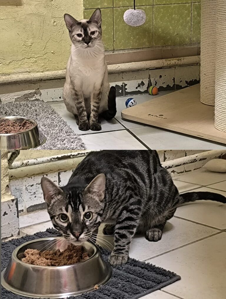 Von insgesamt 5 Katzen und Katern sind nur noch Deline und Dexter für Wohnungshaltung auf der Suche nach einem neuen Dosenöffner. Beide sind noch schüchtern, aber lassen sich anfassen. Vermutlich handelt es sich bei den beiden um Bengal-Mixe.