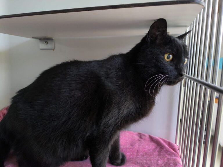 Dieser kastrierte schwarze Kater wurde auf dem Edeka Parkplatz in Giesen gefunden. Er ist schon etwas älter und hat einen braunen Pigmentfleck im linken Auge. Beide Ohren sind mit Rissen versehen.