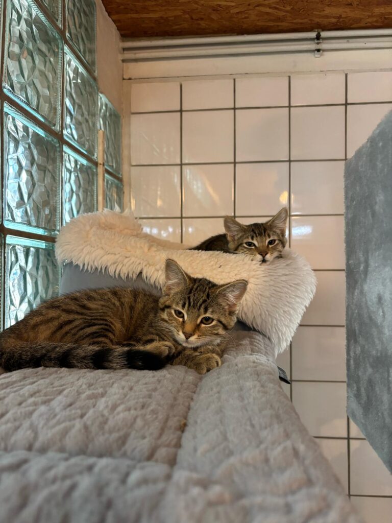 Die beiden Kitten Hannah und Haily wurden in Hildesheim gefunden und kamen vor kurzem zu uns ins Heim. Sie suchen gemeinsam ein Zuhause. Sie sind noch ziemlich wild, haben sich aber inzwischen schön entwickelt. Während Hannah scheinbar noch etwas Zeit benötigt, kommt Haily sogar schon zum Schmusen vorbei. Wir wünschen uns für die beiden ein Zuhause ohne Kinder oder andere Tiere wie Hunde oder Kaninchen. Es werden geduldige Menschen gesucht, die Hannah die benötigte Zeit zum Auftauen geben. Die 2 Hübschen können in der Wohnung gehalten werden, aber auch Freigang ist möglich.