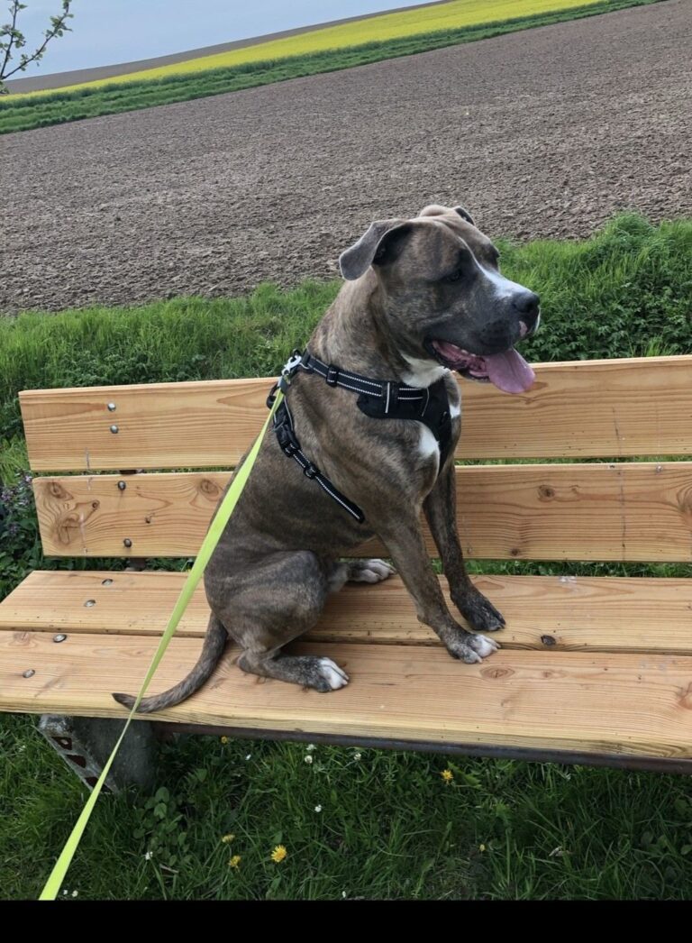 Sam ist ein verschmuster Mischlings-Rüde aus Dogge, Stafforshire und weiteren Rassen.