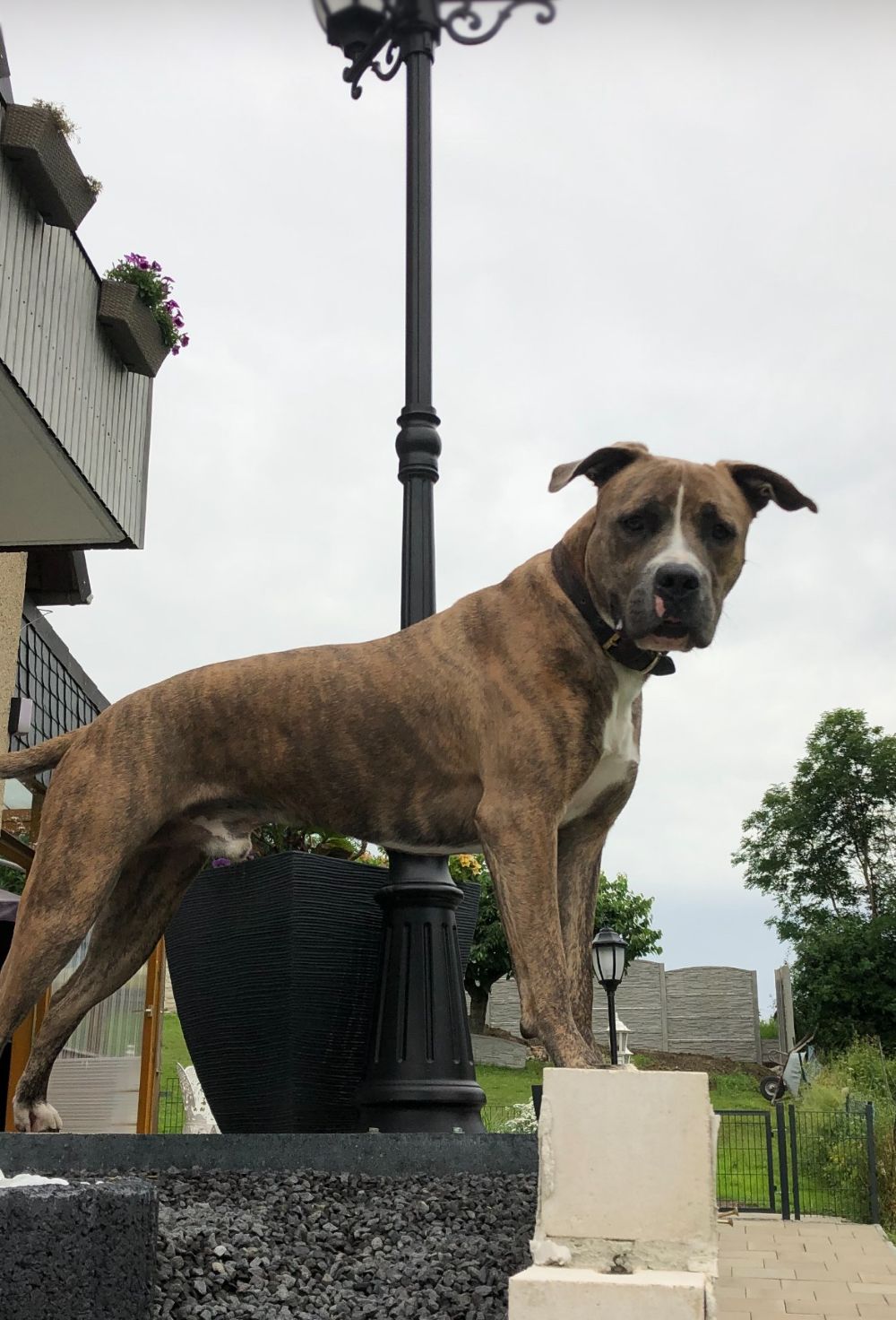 Sam ist ein verschmuster Mischlings-Rüde aus Dogge, Stafforshire und weiteren Rassen.