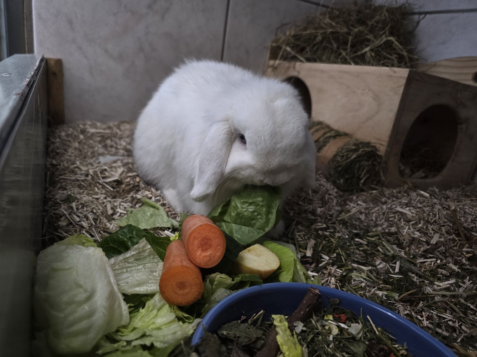 Hallo, mein Name ist Snowball und ich bin ein blauäugiges Widderkaninchen. Durch meine Rasse gibt es einige Dinge, die beachtet werden müssen. Mehrere Versuche mich zu Vergesellschaften sind leider bislang gescheitert, da sich alle von hinten anschleichen und ich das überhaupt nicht mag. Für weitere Informationen wenden Du/Sie sich gern an die Tierpfleger im Tierheim, denn Sie verwalten auch meinen Terminplan.